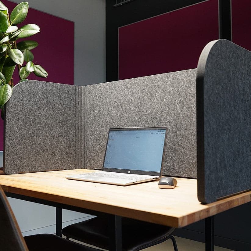 EASYfelt Desky est un écran de concentration acoustique et la solution acoustique idéale pour les travailleurs à domicile. Créez en un rien de temps un poste de travail à domicile avec écran sur n'importe quelle table. Offrez-vous plus d'intimité et moins de distractions à la maison. Un écran acoustique de table pliable et pratique pour un bureau à domicile confortable et silencieux. Disponible en 3 couleurs et fabriqué en feutre de 25 mm d'épaisseur.