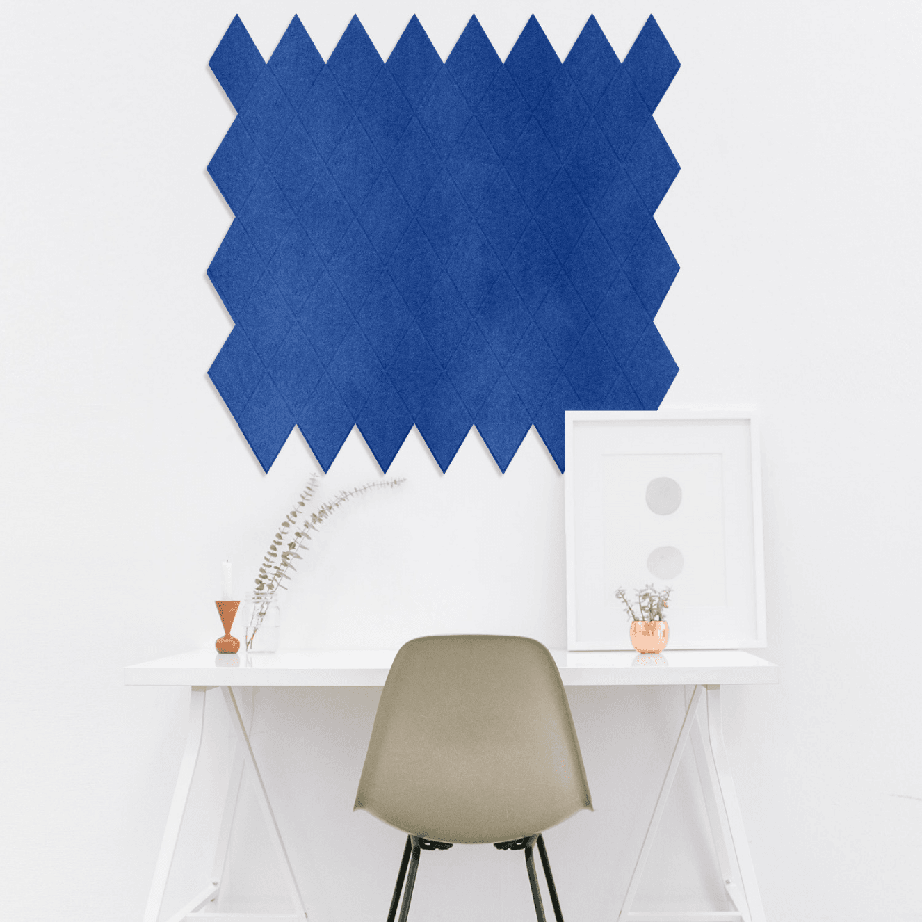 Le Stick Diamond est fabriqué en feutre PET, dont au moins 50 % est composé de matériaux recyclés. L’élément mural est disponible en deux tailles : Medium (26 x 15 cm) et Large (52 x 30 cm).