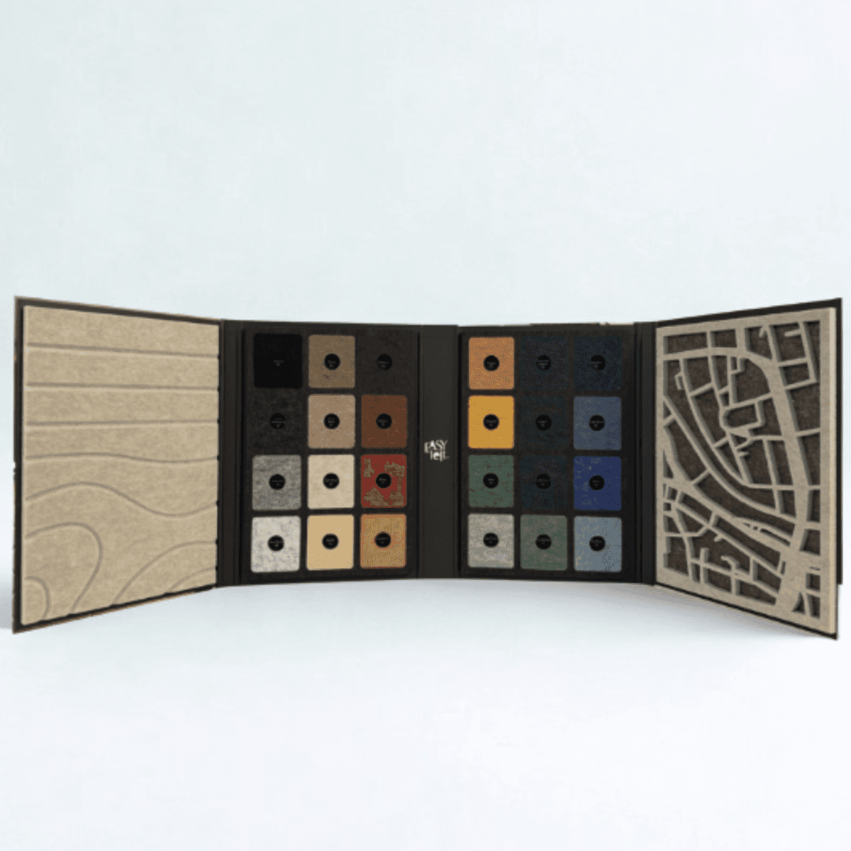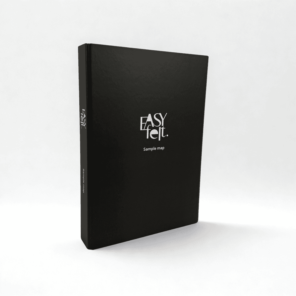 Ontdek de volledige collectie PET-vilt van EASYfelt in één overzichtelijke samplemap. Deze stijlvolle map bevat alle kleuren van ons nieuwe Nederlands vilt, zorgvuldig gepresenteerd met inspirerende foto’s, materiaalinformatie en toepassingen.